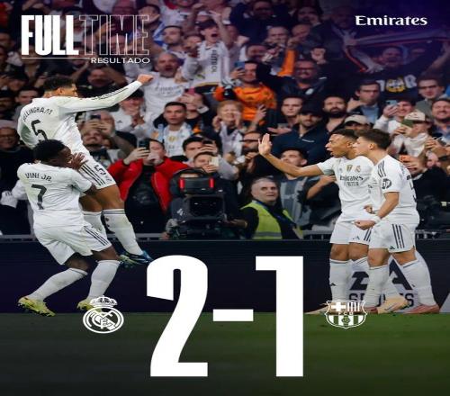 比赛结束,皇家马德里在主场击败巴塞罗那!