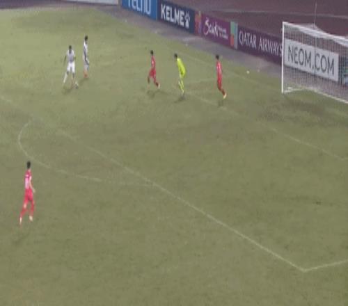 第54分钟,恩加德乌禁区内横传,球打在莱奥-阿图尔的身上击中门柱,张健智随即解围。