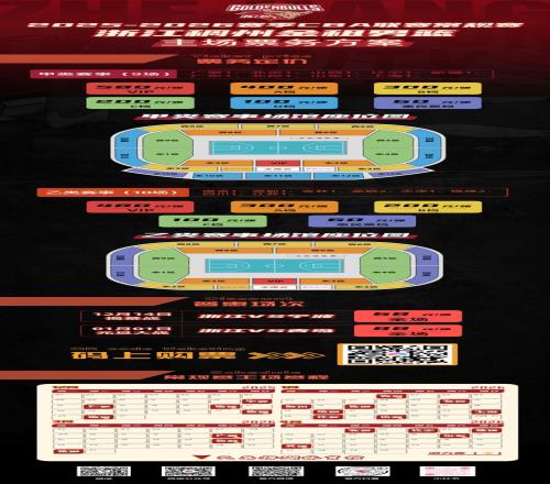 常规赛单场票将于12月6日12:00在大麦APP及微信小程序正式开售,12月14日浙江VS宁波、12月16日浙江VS广东两场比赛同步开售,点击下方小程序抢先预约!