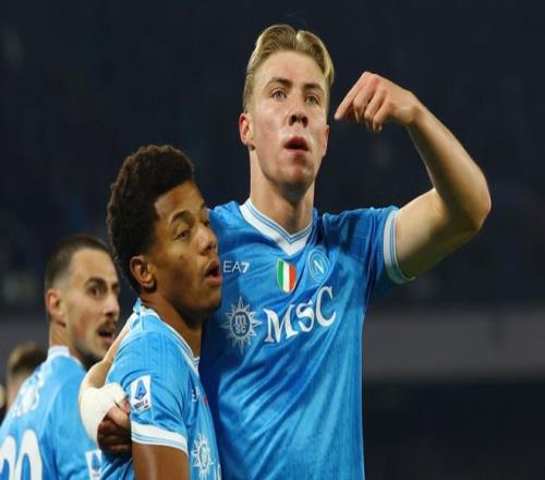 比赛刚刚开始不久,麦克托米奈门前抢点头球攻门,只可惜顶偏了。第7分钟,那不勒斯进球了!内雷斯埃禁区右侧送出横传,霍伊伦门前包抄射门,球进了!那不勒斯获得梦幻般的开局。第20分钟,伊尔迪兹外围尝试一脚远射,踢飞了。6分钟后,迪洛伦佐头球攻门被门将神奇化解。随后,凯利门前浪费良机。半场补时阶段,麦克托米奈头球攻门击中立柱。半场结束,那不勒斯1-0领先尤文图斯。