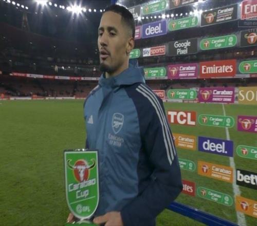 后防核心,萨利巴当选阿森纳vs水晶宫全场最佳球员